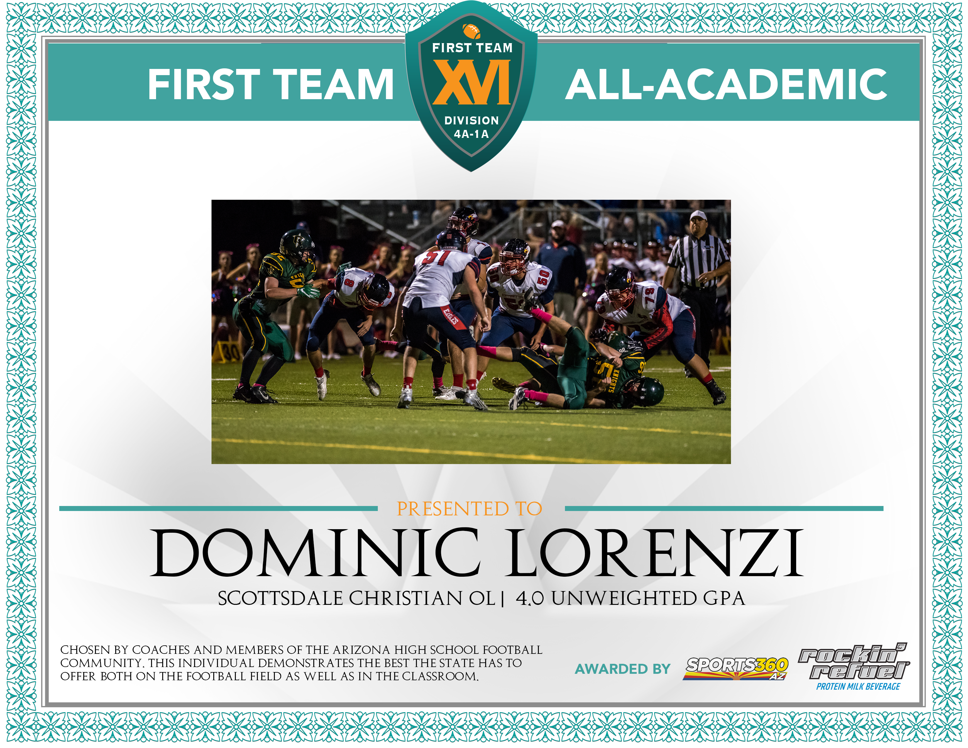 Based on the nominations from coaches and members of the Arizona High School football community, Sports360AZ introduces the 2016 Arizona All-Academic Football Team for the 4A-1A Divisions presented by Rockin’ Refuel, spotlighting the best the state has to offer both on the football field as well as in the classroom.
