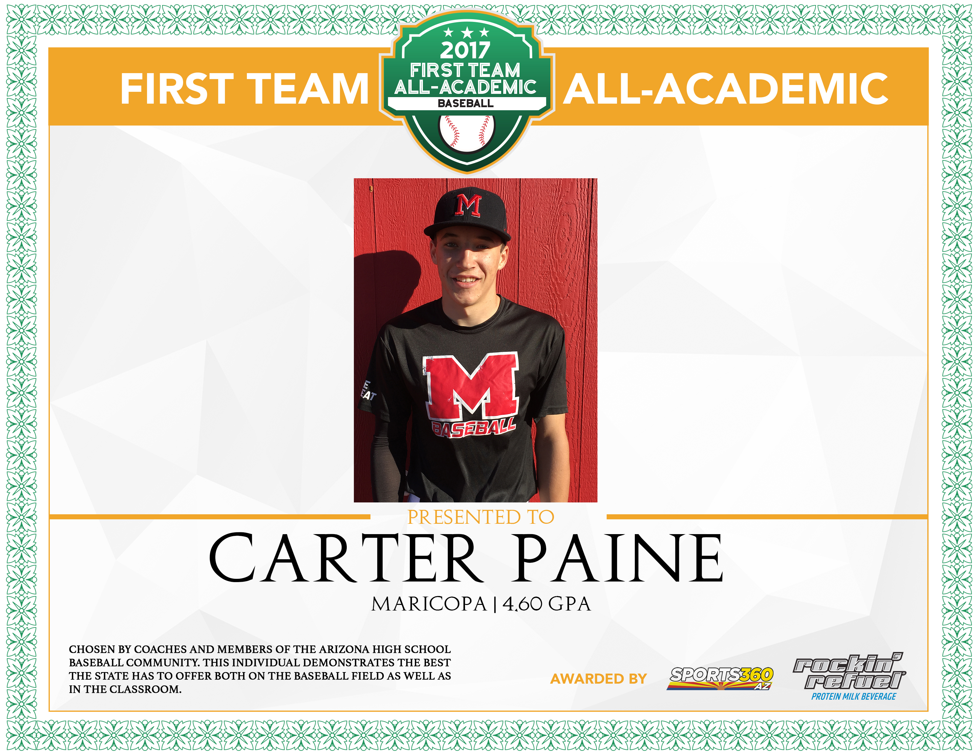 Based on the nominations from coaches and members of the Arizona High School baseball community, Sports360AZ introduces the 2017 Arizona All-Academic Baseball Team presented by Rockin’ Refuel, spotlighting the best the state has to offer both on the court as well as in the classroom.