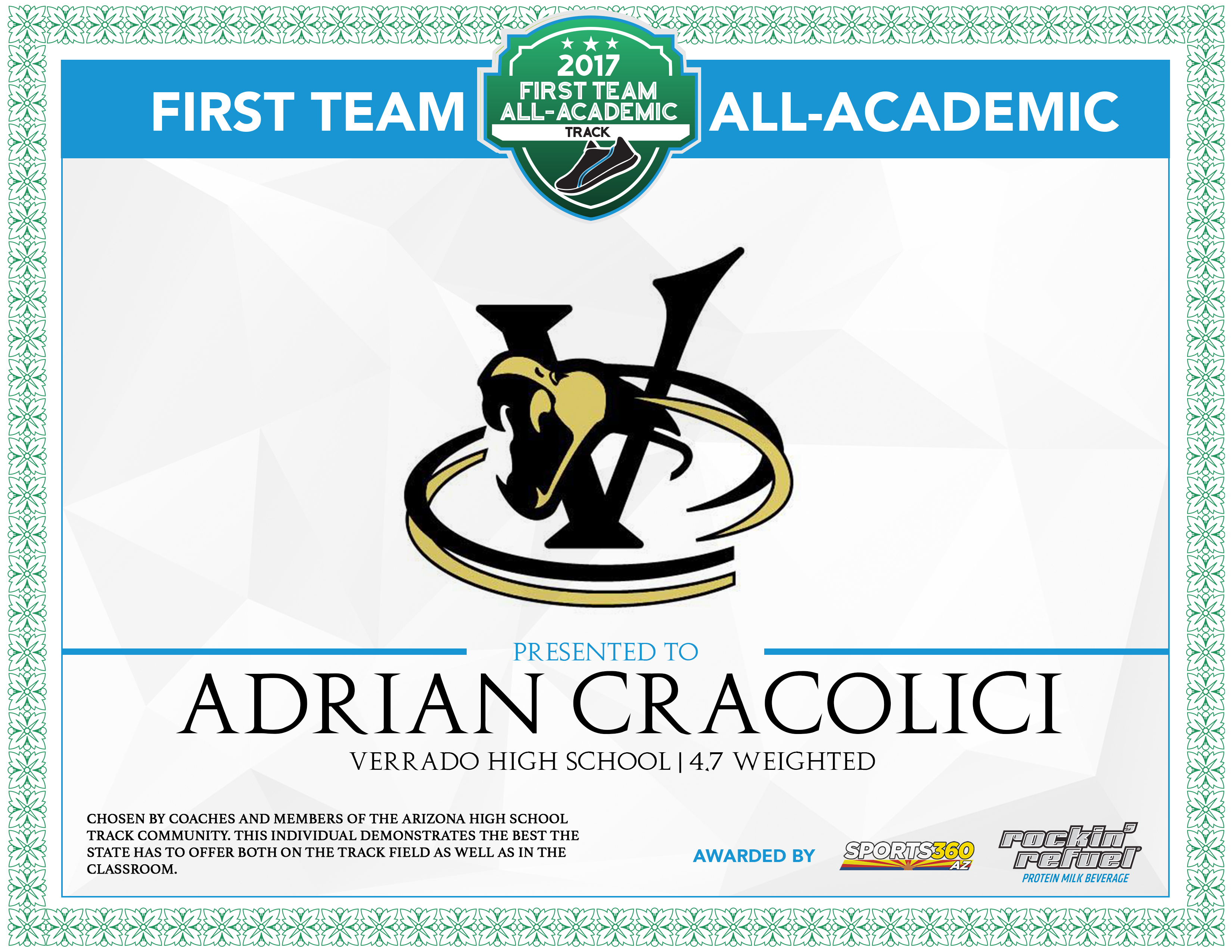 Adrian Cracolici Verrado High School 4.7 GPA