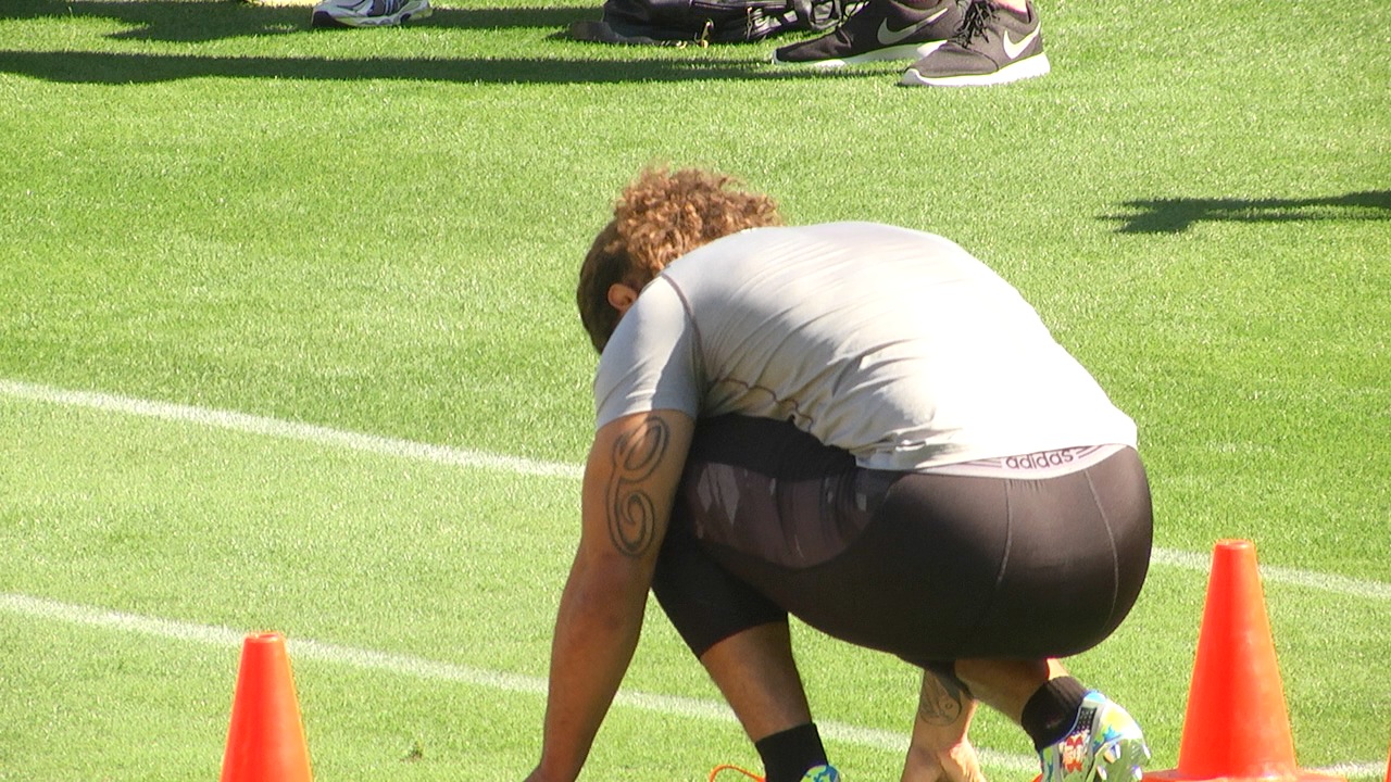 The first activity after weights and stretching was the 40-yard dash which helped the players release some of their pent-up nerves associated with the auditions.
