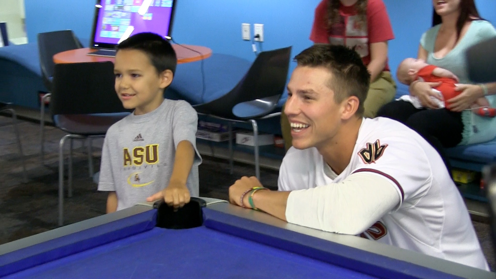 In the midst of the grind of the 2015 regular season, Diamondbacks pitcher Patrick Corbin, third baseman Jake Lamb and infielder Chris Owings along with the team mascot Baxter spent the middle of their day on Wednesday to play games, sign autographs and visit with the young kids at Phoenix Children’s Hospital. Check out some of the sights and sounds from what was a special experience for everyone that was present.