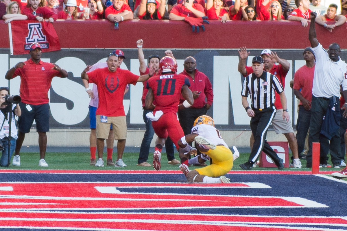 4. Getting Defensive…it started as one of the most unconventional Territorial Cups with a pair of defensive scoop and scores to start the scoring. On the opening drive Taylor Kelly was sacked and fumbled, the ball was scooped up by Anthony Lopez and returned 25 yards untouched for a quick 7-0 lead. After the Wildcats turned ASU over on downs inside the four, Anu Solomon mis-handled the snap and big Demetrius Cherry lumbered in from two yards out to the game. It’s the type of ball-hawking, play-making skills both defenses have shown. Despite the high scoring game, there were plenty of big hits including James Johnson coming untouched off the corner and drilling Solomon last in the first quarter. UofA registered seven sacks and forced two turnovers.