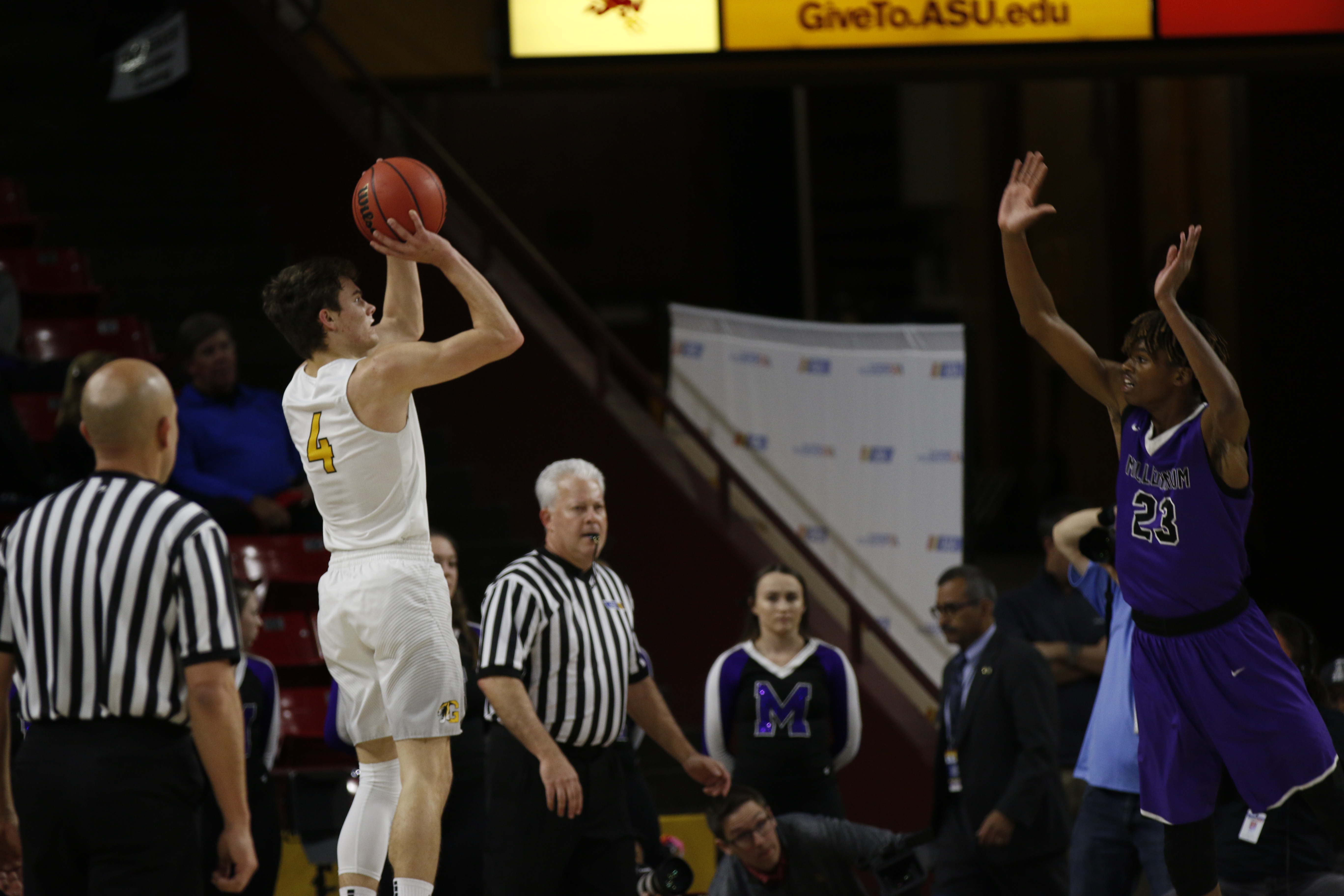 On the boys’ and girls’ side, both Gilbert and Millennium High School squared off on the hardwood. Each contest had large crowds that filled nearly the entire lower bowl and it was a raucous environment during both games.