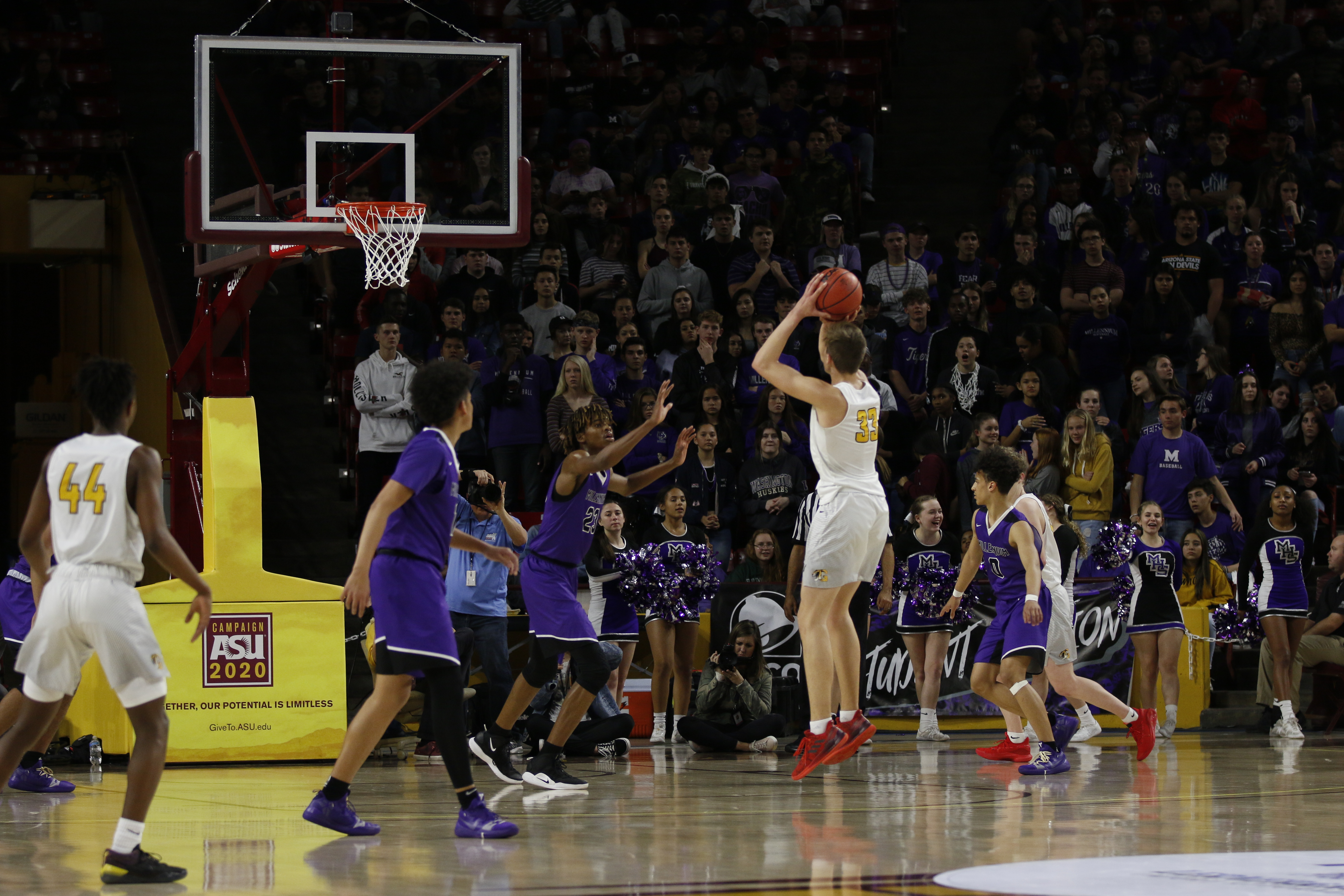 On the boys’ and girls’ side, both Gilbert and Millennium High School squared off on the hardwood. Each contest had large crowds that filled nearly the entire lower bowl and it was a raucous environment during both games.