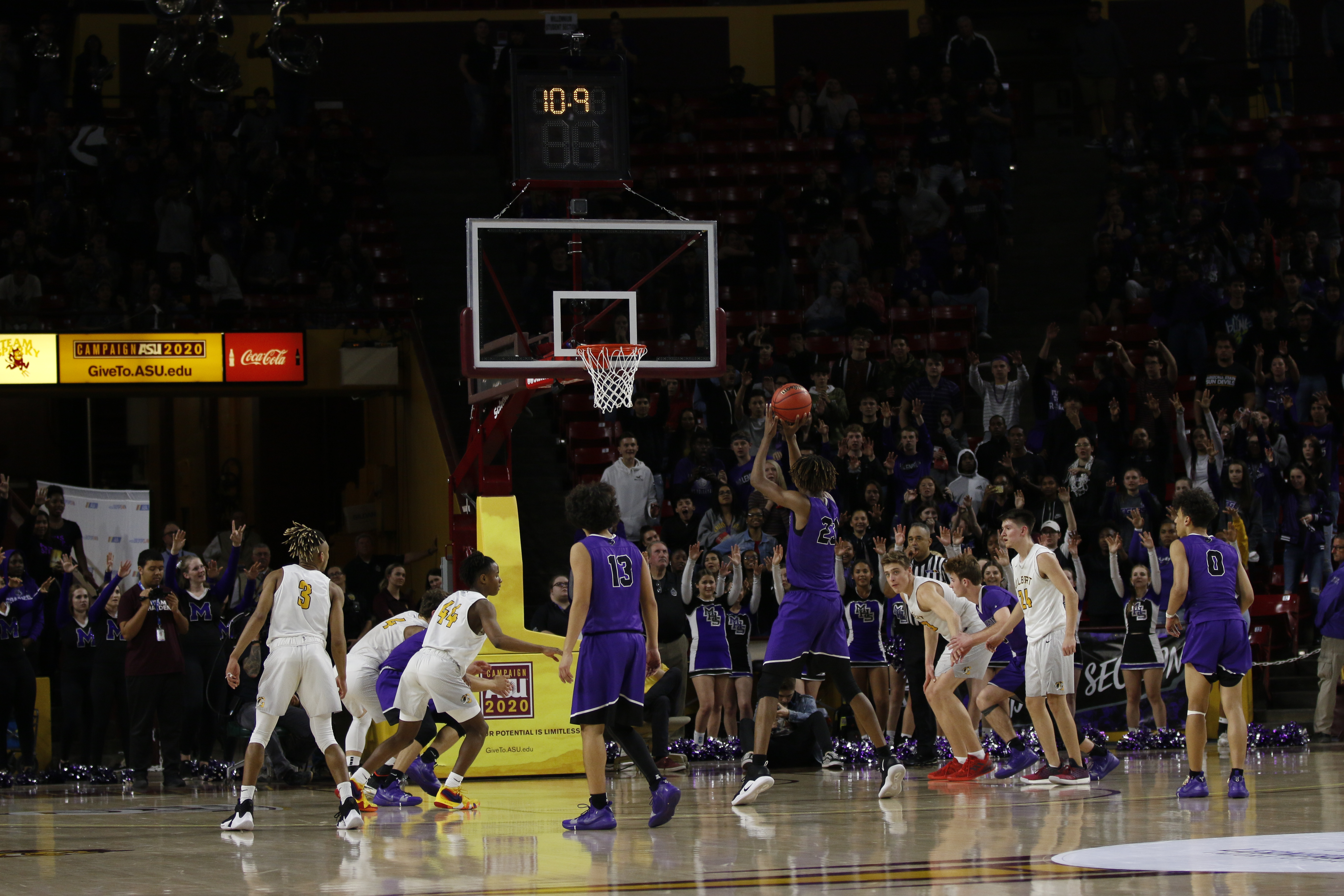 On the boys’ and girls’ side, both Gilbert and Millennium High School squared off on the hardwood. Each contest had large crowds that filled nearly the entire lower bowl and it was a raucous environment during both games.
