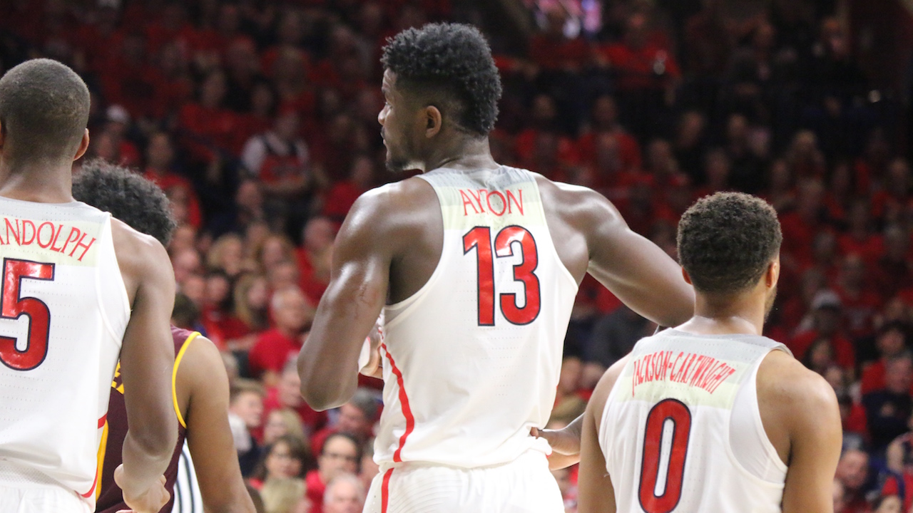Arizona State University College Featured University of Arizona GALLERY: Arizona and ASU Hoops Jordan Hamm Posted December 31, 2017 at 12:54 am Share Tweet Share Deandre Ayton 7 Image 32 of 70 Photos by Jordan Hamm Related posts: Arizona-Arizona State MBB Primer with Insider Jon Rothstein Pac-12 Tourney Storylines For Wildcats, Sun Devils Takeaways from No. 16 Arizona State’s loss at Stanford ‘Cats Clip Devils In Tempe: Five Things We Learned Share Tweet Share Alex Barcello DeQuon LakeAllonzo TrierBobby HurleyDeAndre AytonDusan RisticKodi JusticeMcKale CenterParker Jackson-CartwrightRemy MartinSean MillerShannon EvansTra Holder