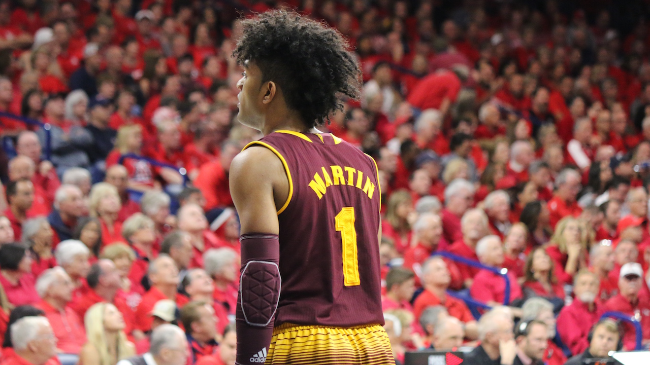 Arizona State University College Featured University of Arizona GALLERY: Arizona and ASU Hoops Jordan Hamm Posted December 31, 2017 at 12:54 am Share Tweet Share Remy Martin 11 Image 11 of 70 Photos by Jordan Hamm Related posts: Arizona-Arizona State MBB Primer with Insider Jon Rothstein Pac-12 Tourney Storylines For Wildcats, Sun Devils Takeaways from No. 16 Arizona State’s loss at Stanford ‘Cats Clip Devils In Tempe: Five Things We Learned Share Tweet Share Alex Barcello DeQuon LakeAllonzo TrierBobby HurleyDeAndre AytonDusan RisticKodi JusticeMcKale CenterParker Jackson-CartwrightRemy MartinSean MillerShannon EvansTra Holder