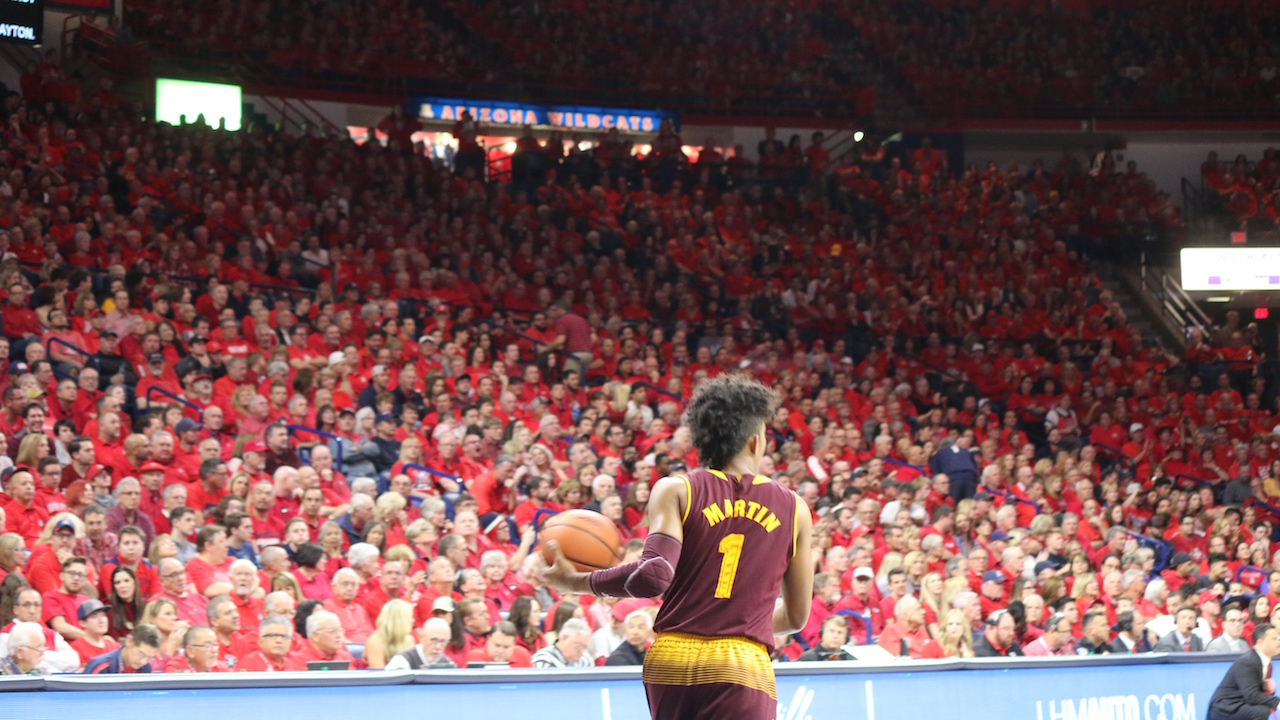 Arizona State University College Featured University of Arizona GALLERY: Arizona and ASU Hoops Jordan Hamm Posted December 31, 2017 at 12:54 am Share Tweet Share Remy Martin Wide Image 17 of 70 Photos by Jordan Hamm Related posts: Arizona-Arizona State MBB Primer with Insider Jon Rothstein Pac-12 Tourney Storylines For Wildcats, Sun Devils Takeaways from No. 16 Arizona State’s loss at Stanford ‘Cats Clip Devils In Tempe: Five Things We Learned Share Tweet Share Alex Barcello DeQuon LakeAllonzo TrierBobby HurleyDeAndre AytonDusan RisticKodi JusticeMcKale CenterParker Jackson-CartwrightRemy MartinSean MillerShannon EvansTra Holder