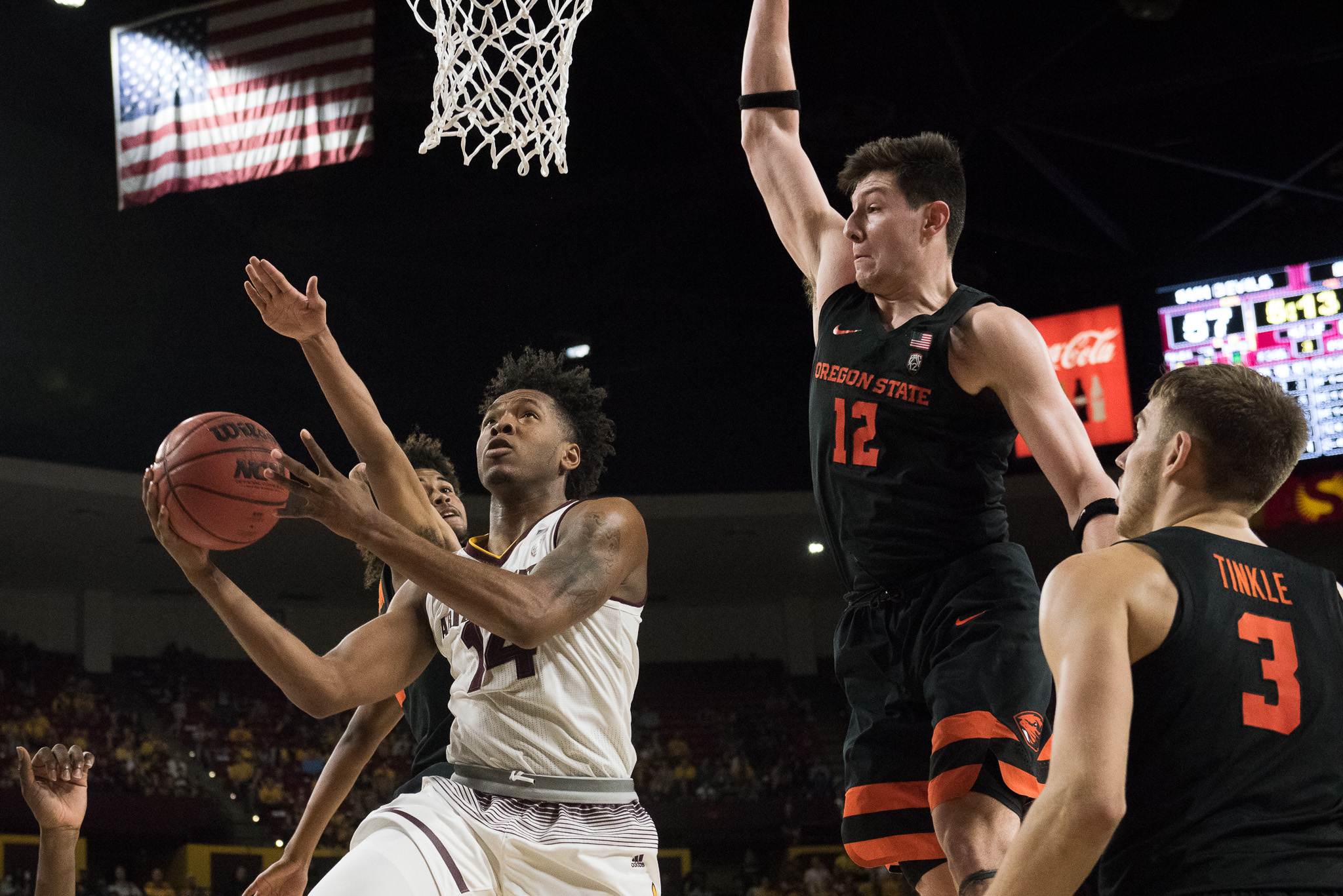 It wasn’t easy, but Arizona State was able to manage a home split with the Oregon schools. After a flat effort Thursday night in a loss to Oregon, the Sun Devils rallied on Saturday to beat Oregon State 77-75. Check out the cool photos from the game.