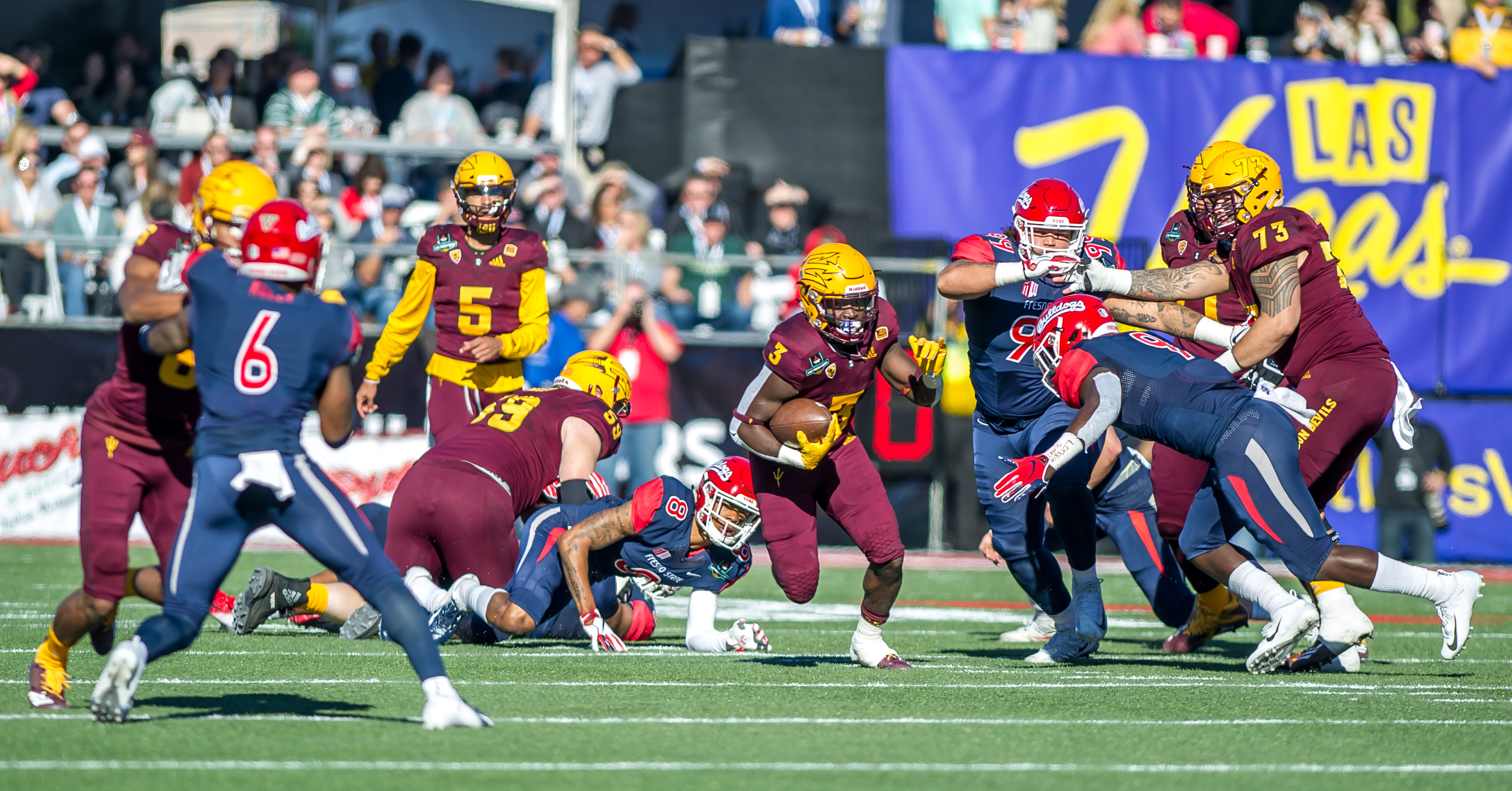 Arizona State University College Featured GALLERY – ASU v Fresno State, Vegas Bowl sports360az Posted December 15, 2018 at 9:59 pm Share Tweet Share Photos by Andy Silvas Photography Las Vegas Bowl 2018 -31 Image 31 of 47 Related posts: Wrapping Up ASU’s Loss To Stanford Todd Graham: The Man Who Stopped Karaoke (AP Photo/Marcio Jose Sanchez)Devils Place Three On All-Pac-12 Team (AP Photo/Charlie Riedel)Devils Done Dancing: Buffalo Races Past ASU Share Tweet Share Arizona State Sun DevilsFresno State Bulldogs