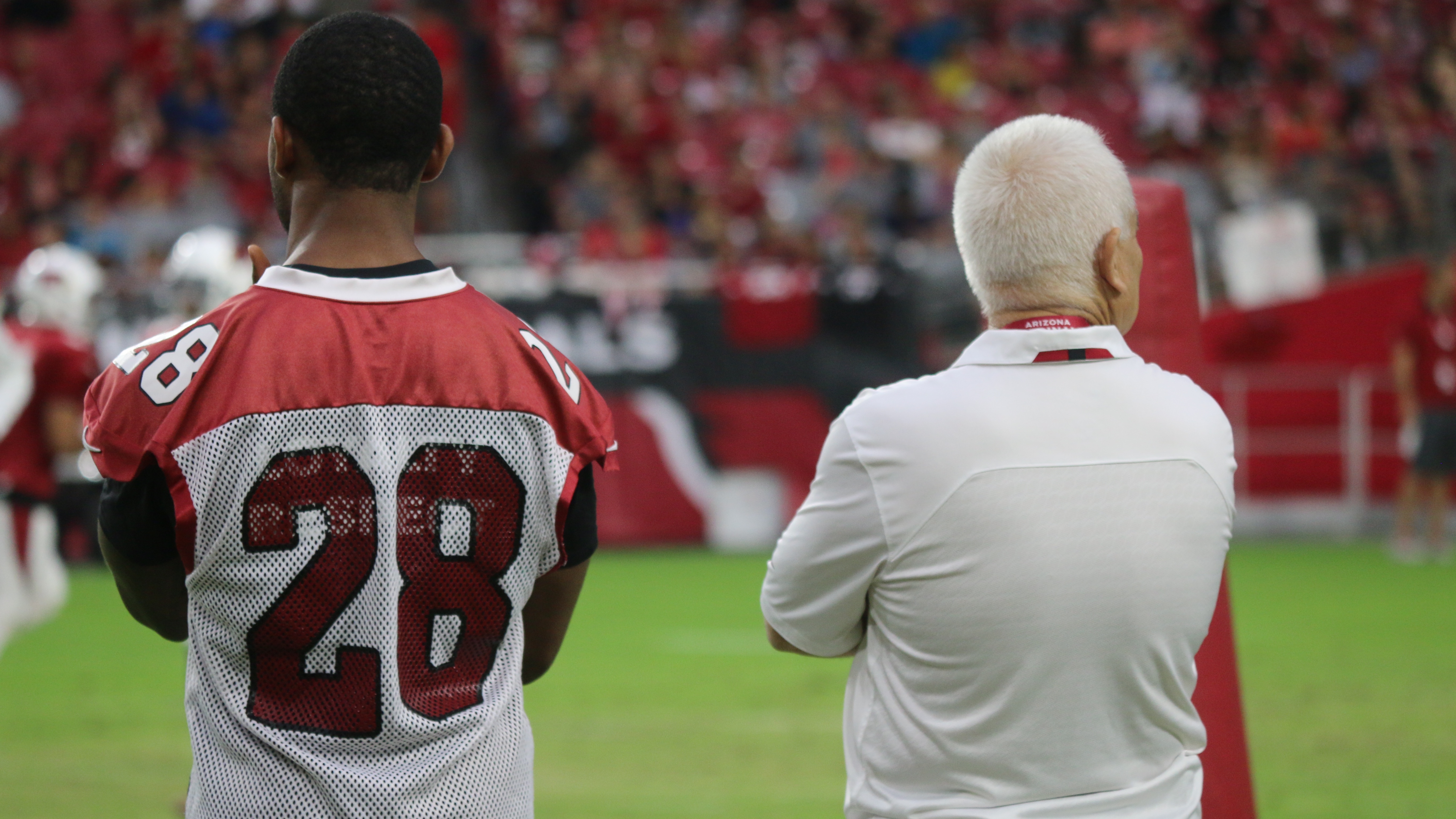 The Arizona Cardinals are in full camp swing, with the team participating in the Red-White practice on Saturday. Over 25,000 came to see what the Bird Gang could do as they prep for their first preseason game against the Oakland Raiders. The day started with team drills and then scrimmage situations, highlighted by a touchdown pass from Larry Fitzgerald.