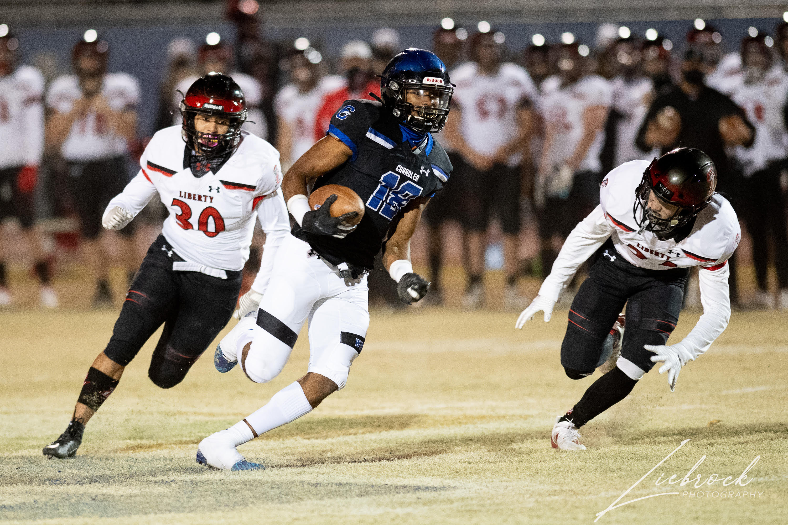 Chandler School District Featured Preps GALLERY – Chandler vs. Liberty Semifinal Sports360AZ Posted December 6, 2020 at 12:43 pm Share Tweet Share Photos by Shannon Liebrock Photography No. 1 Chandler defeated No. 5 Liberty 35-34 in overtime last night to advance to the Open Division Title Game. unnamed-10 Image 11 of 40 Related posts: CUSD Rewind – Basha Remains Perfect(Photo Gallery), AFL Game for Perry, More GALLERY – Chandler v Perry 6A Title Game Cesmat – It’s Time for High School Football, Let’s Clarify a Few Things… Dane Christensen Remaining Positive Throughout Recruiting Process Share Tweet Share