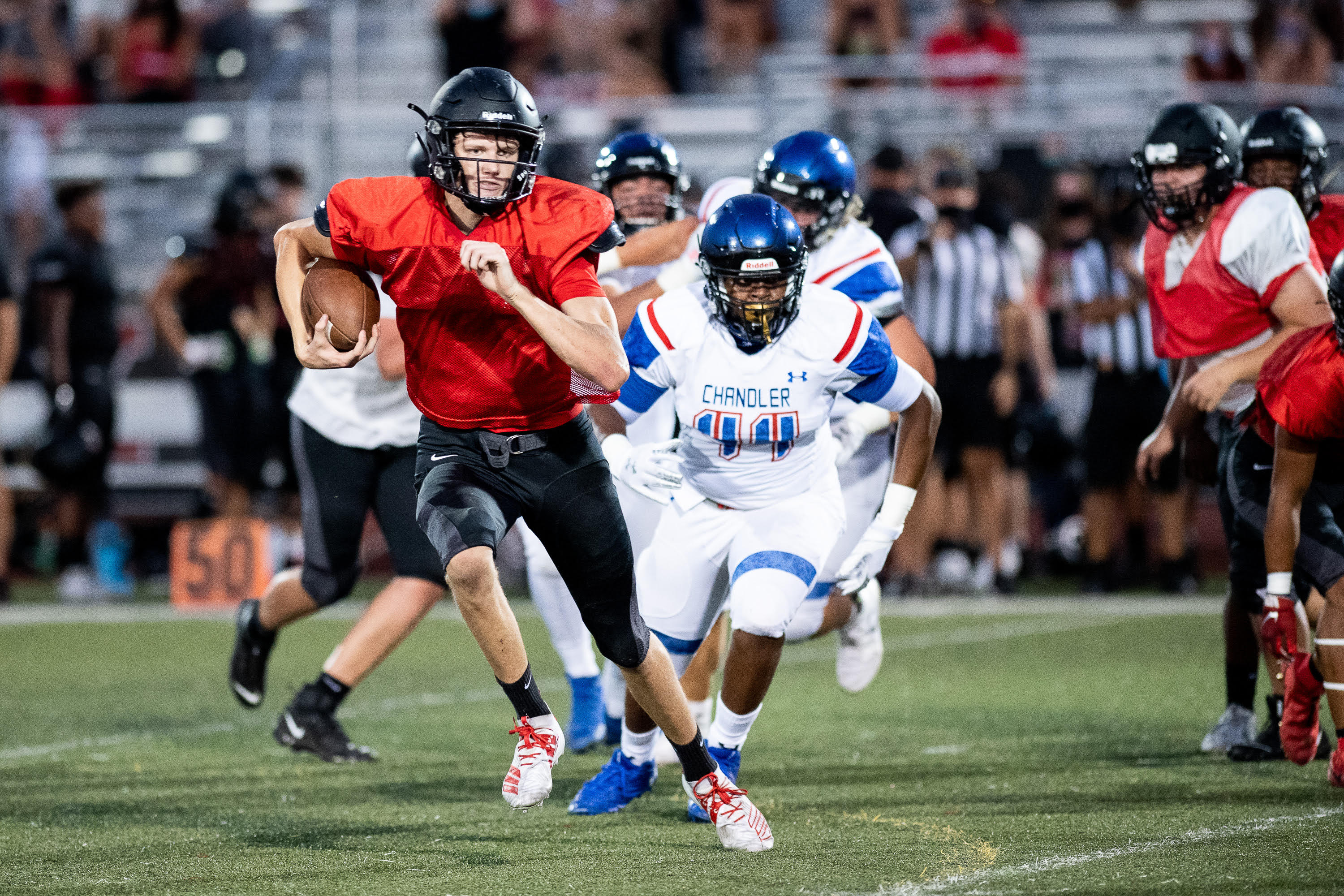 Chandler School District Featured Preps GALLERY – Chandler vs Williams Field Scrimmage Sports360AZ Posted September 24, 2020 at 12:38 pm Share Tweet Share Photos by Shannon Liebrock Photography High school football is back. Chandler and Williams Field took the field for a scrimmage on Wednesday night. unnamed-16 Image 16 of 31 Related posts: LIVESTREAM Football 7pm Chandler Wolves v Sandra Day O’Connor GALLERY-Chandler beats Red Mountain Jason Jewell Power Rankings GALLERY – Chandler vs Hamilton “Battle of Arizona Avenue” Lunch Share Tweet Share