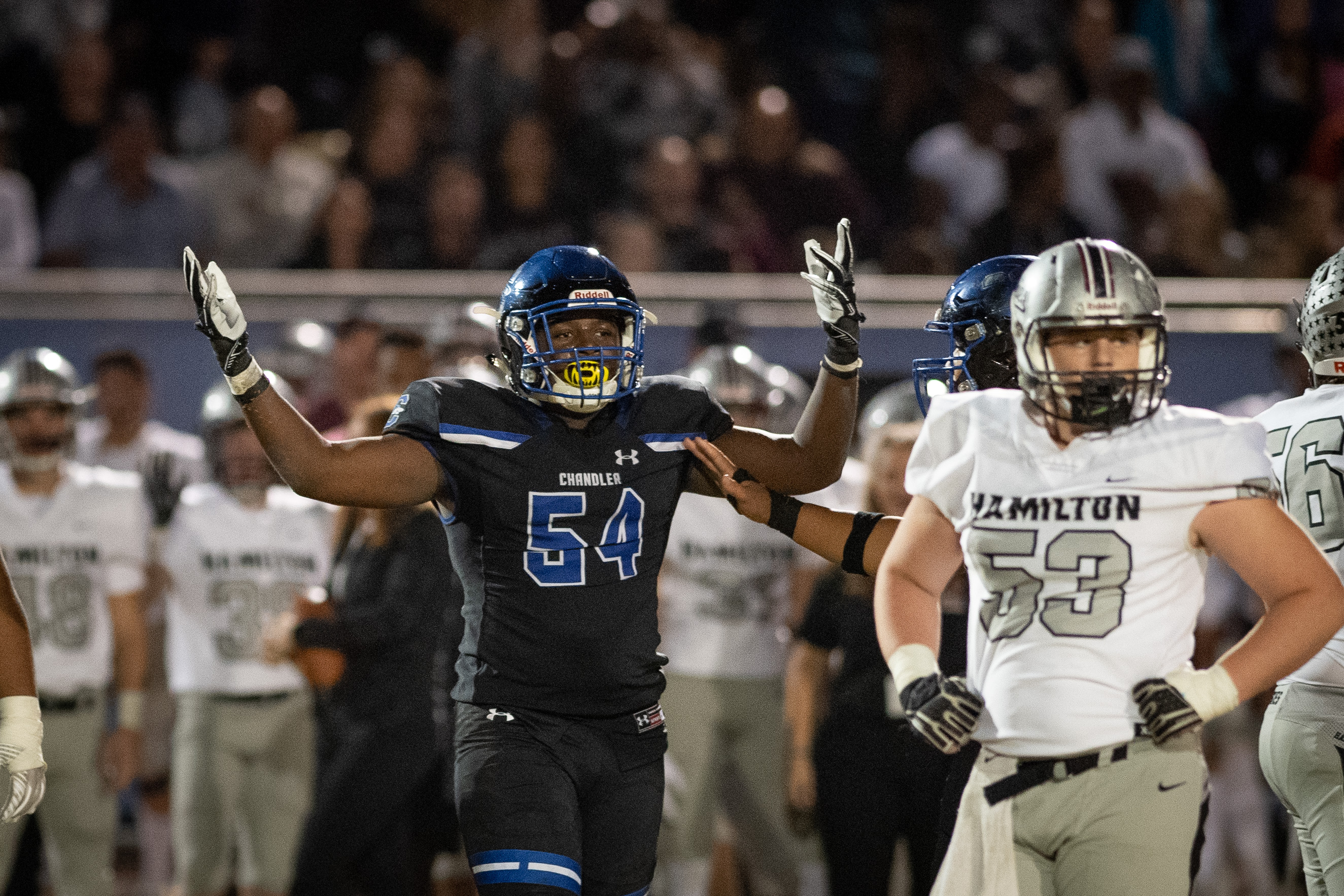 Chandler School District Featured Preps GALLERY – Hamilton vs Chandler Sports360AZ Posted November 2, 2019 at 4:15 pm Share Tweet Share An epic matchup on Arizona Avenue between Chandler and Hamilton Friday night. Shannon Liebrock Photography has a full photo gallery to enjoy! untitled-0584 Image 27 of 56 Related posts: GALLERY – Unified Football : Hamilton v Chandler GALLERY – Chandler vs Hamilton “Battle of Arizona Avenue” Lunch Liebrock Behind the Lens: Chandler vs Perry Liebrock Behind the Lens: Casteel at Chandler Share Tweet Share Chandler WolvesHamilton HuskiesShannon Liebrock Photography