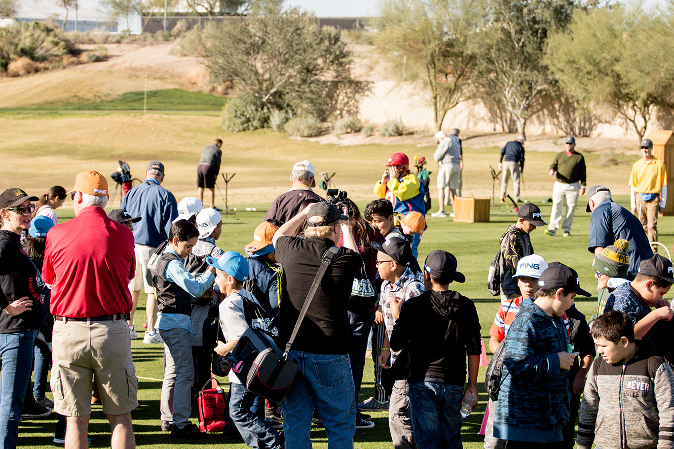 The R.S. Hoyt Jr. Family Foundation Dream Day presented by PING took place on the TPC Scottsdale Champions Course Practice Range. Junior golfers enjoyed a day full of practice swings at a human bullseye, motivational speeches, and smiles all around. Even the Arizona based team mascots became part of the fun.