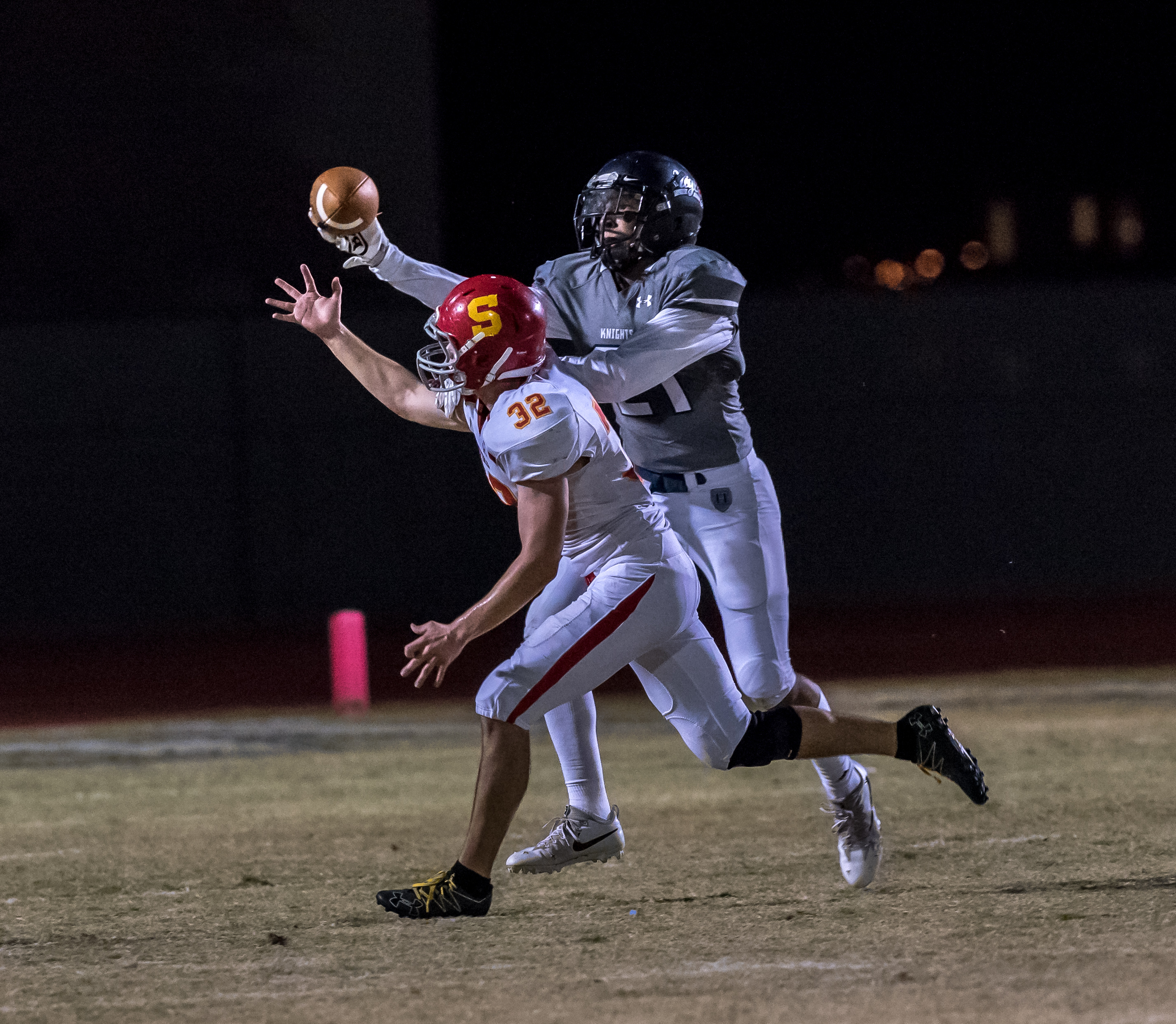 Featured Preps GALLERY: Seton Catholic vs Higley sports360az Posted October 28, 2017 at 6:15 am Share Tweet Share The Knights hosted Seton Catholic Sentinels on Friday Night with a final score of 50-0 over Seton. Higley finished the regular season with a 9-1 record and 4-0 in league. Andy Silvas Photography higley vs seton -16 Image 15 of 28 Related posts: GALLERY: Sights from Higley High vs Cactus High Knight School: Transfer Matthews Proving Quick Study GALLERY: Saguaro vs Higley GALLERY: Higley vs Tempe Football Share Tweet Share Cade MatthewsDraycen HallGary GalanteHigley KnightsNick WadeSeton CatholicSpencer Brasch