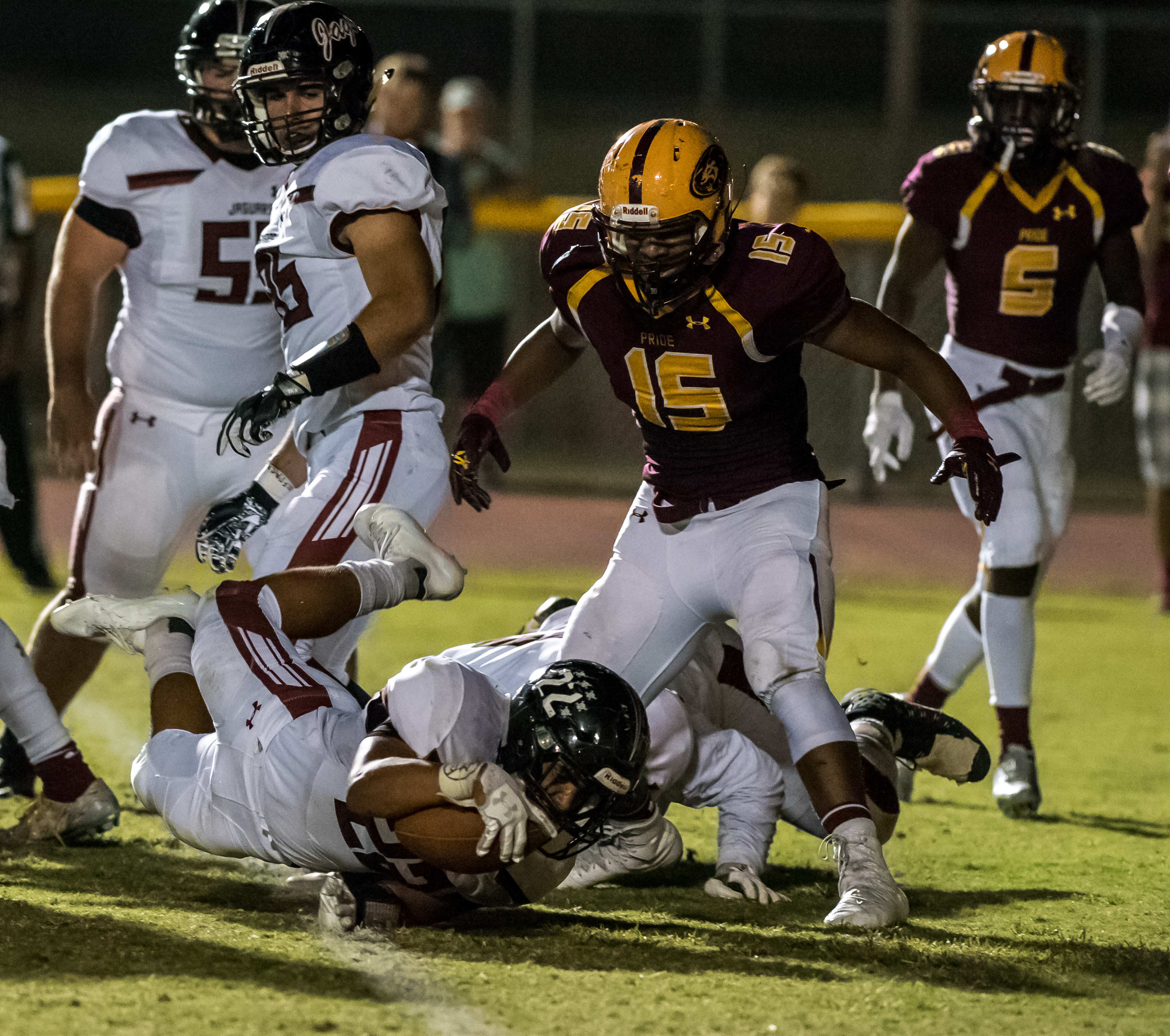 Preps GALLERY: Sight from Desert Ridge vs Pointe – Thursday Night sports360az Posted October 13, 2017 at 8:09 am Share Tweet Share Desert Ridge Jaguars upsets the #1 ranked Mountian Pointe Pride 31-20. Andy Silvas Photography MP vs DR -10 Image 10 of 33 Related posts: Senior Night Bittersweet for Desert Ridge Family Sneak Peek Into The 5A, 6A State Semi’s ‘Tukee Two-Step: DV, MP Roll To Easy Wins GALLERY : 2018 Lion Country Classic Softball Share Tweet Share Cooper Schmidtdesert ridge high schoolJeremy HathcockLucas WrightMountain Pointe PrideNick WallerstedtNorris Vaghuan