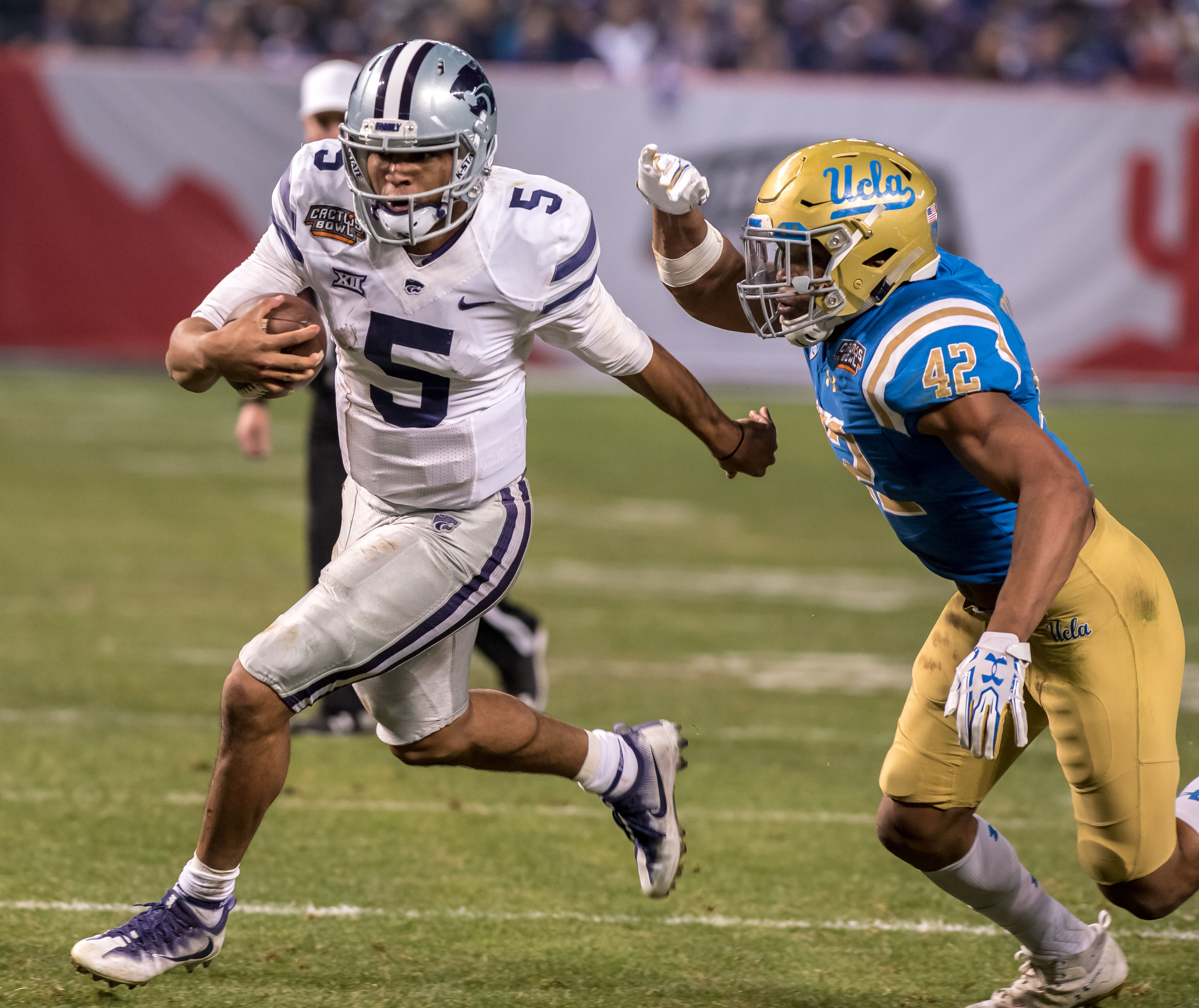 College Featured GALLERY:Sights from 2017 Cactus Bowl – Kansas St vs UCLA sports360az Posted December 27, 2017 at 8:23 am Share Tweet Share Kansas State defeats UCLA 35-17 in the 2017 Cactus Bowl at Chase Field Andy Silvas/ Sports360AZ Photographer Catus Bowl -45 Image 43 of 53 Related posts: Field of Dreams: Valley Bowl Game Returns to Chase St. Mary’s Defensive End, All-American Isibor Commits To UCLA Sun Devils Escape With 23-20 Win: Five Things We Learned Pac-12 survival: UC Board of Regents plunges into the details of UCLA’s pending departure for the Big Ten Share Tweet Share Alex Delton. Bo OlorunfunmiBill SnyderCactus BowlChase FieldJim MoraJosh RosenKansas State WildcatsScott QuessenberryUCLA