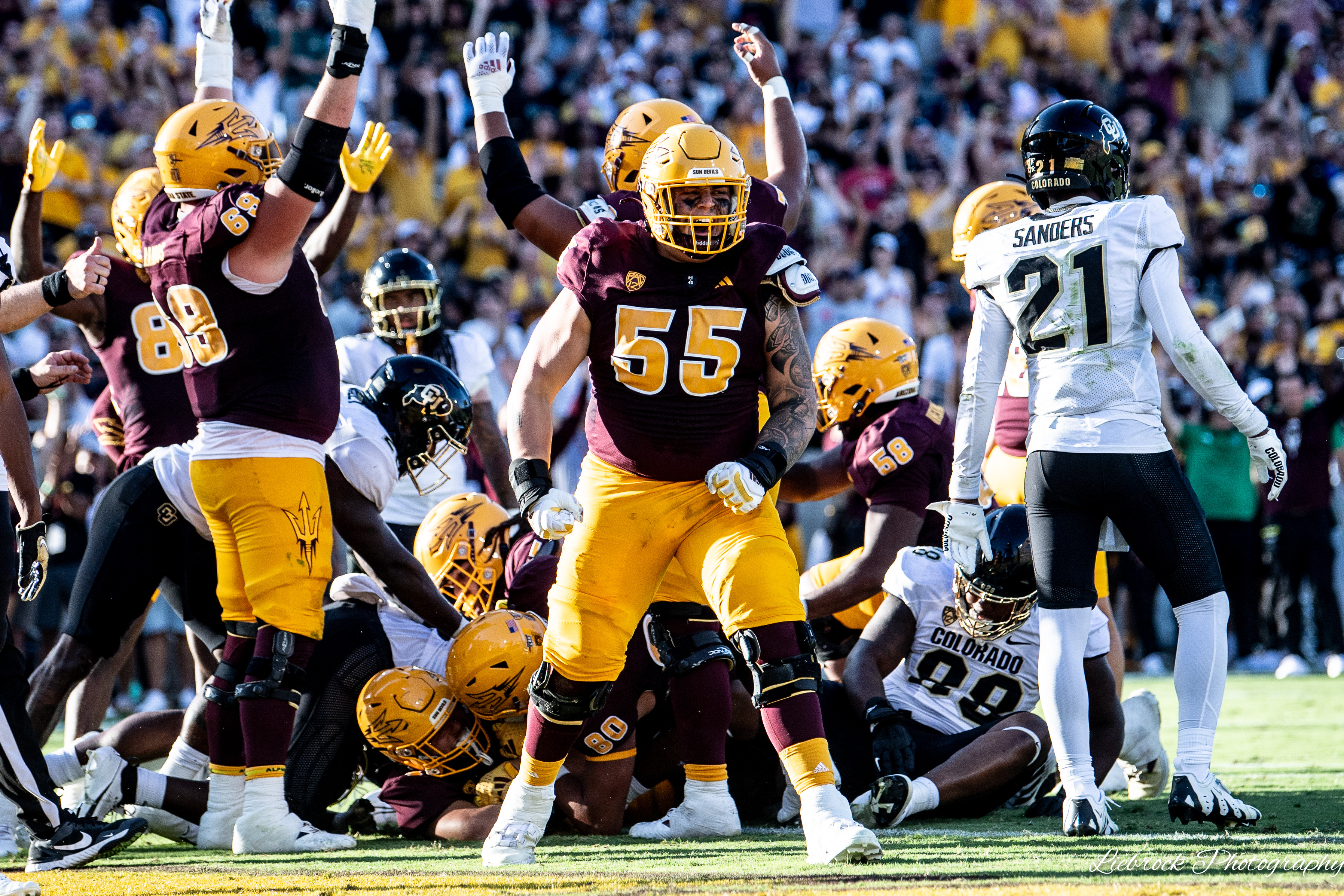 Arizona State University College Featured Liebrock Behind the Lens – Arizona State vs Colorado Sports360AZ Posted October 7, 2023 at 11:09 pm Share Tweet Share Photos by Shannon Liebrock Photography BCD_0096 Image 25 of 37 Related posts: (AP Photo/David Zalubowski)Buffs Hold Off Devils: Five Things We Learned (AP Photo/Rick Scuteri)Arizona State Stumbles, Falls to Colorado Sun Devil Stunner: Five Things We Learned From ASU Upset (AP Photo/Ross D. Franklin)Yogi Roth: Time Is Now For ASU Football Share Tweet Share Arizona State Sun DevilsColorado Buffaloes