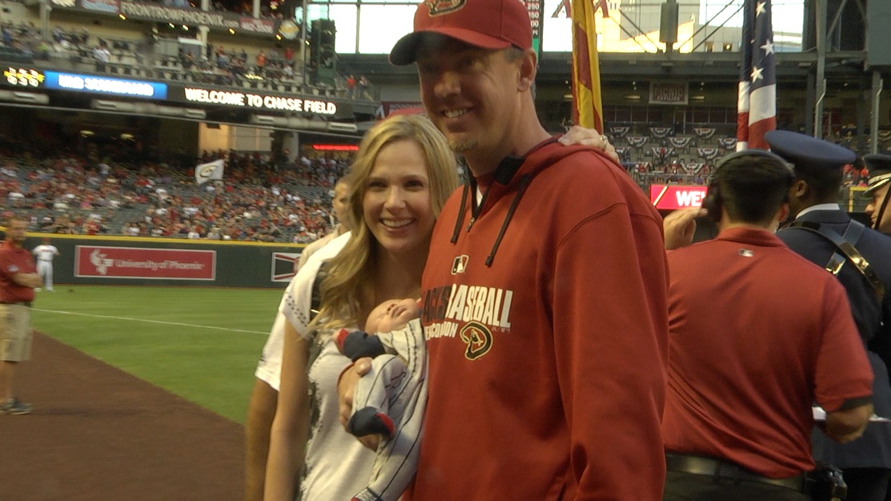 Brad Ziegler poses with wife and new son who was born during spring training