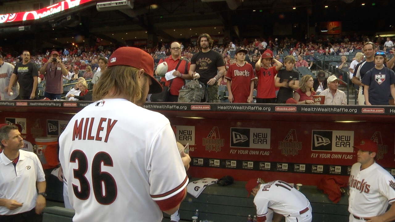 Wade Miley signing autographs for fans