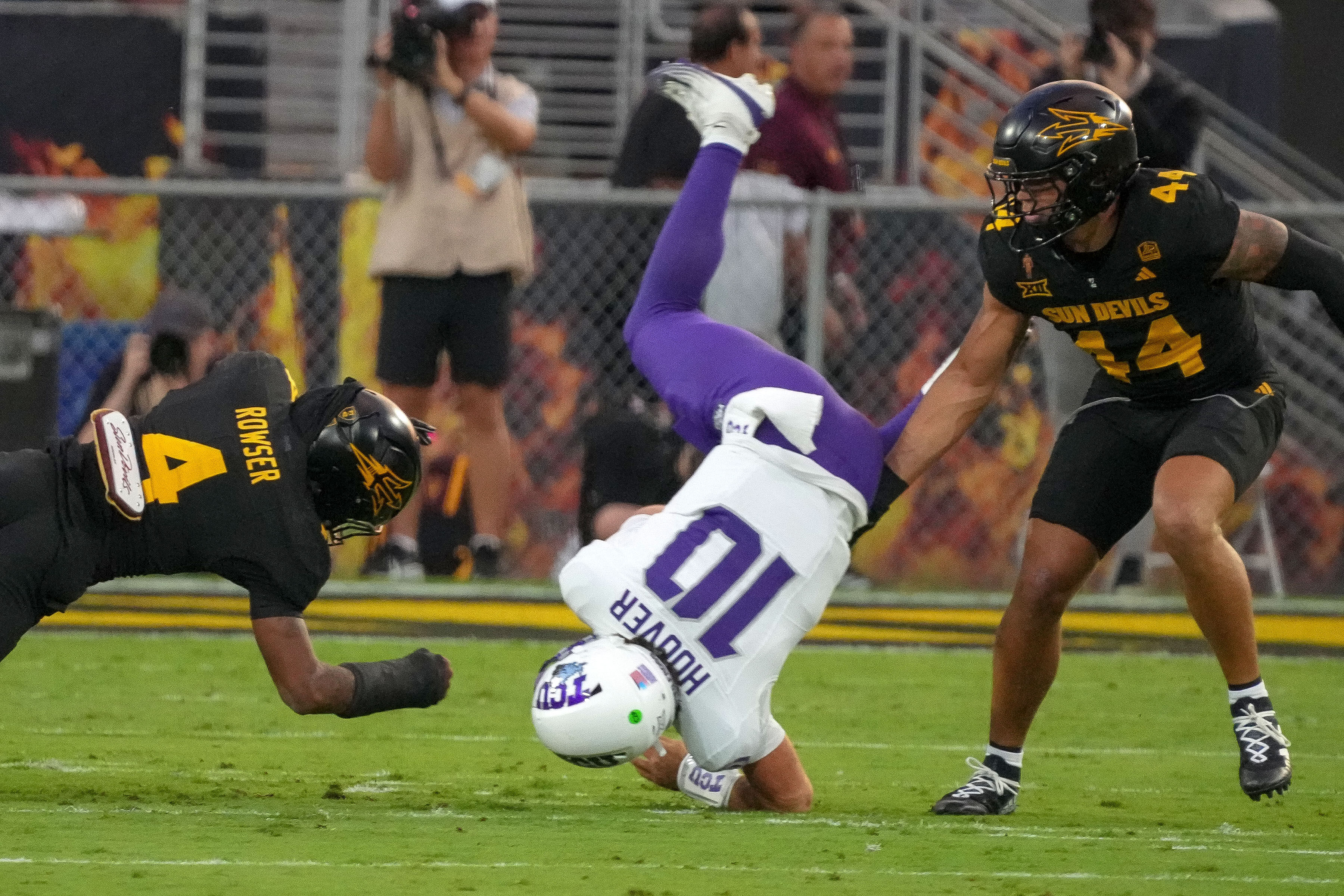 TCU quarterback Josh Hoover was intercepted twice, and the ground game was only able to put up 10 yards on the Sun Devil defense. Arizona State put up 492 yards of total offense.