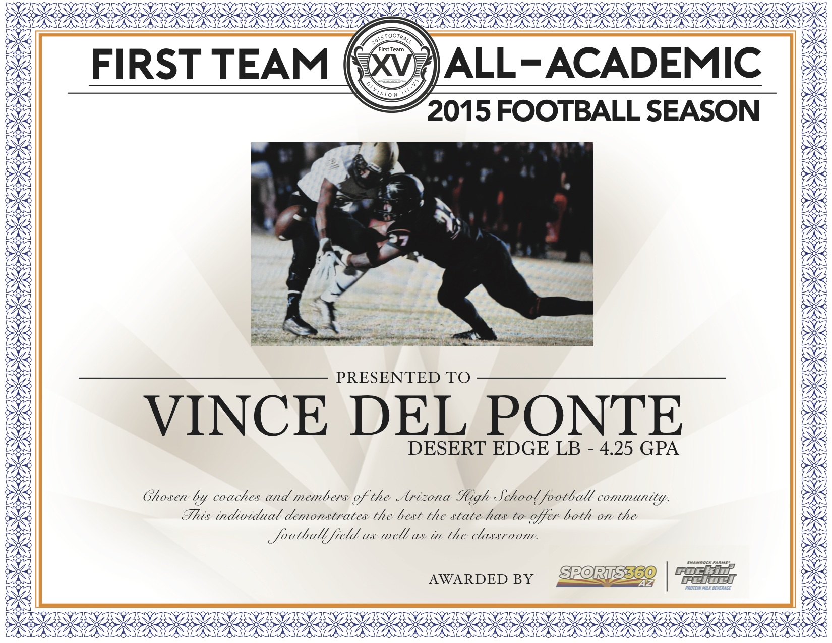 Based on the nominations from coaches and members of the Arizona High School football community, Sports360AZ introduces the 2015 Arizona All-Academic Football Team for Division III-VI presented by Rockin’ Refuel, spotlighting the best the state has to offer both on the football field as well as in the classroom.