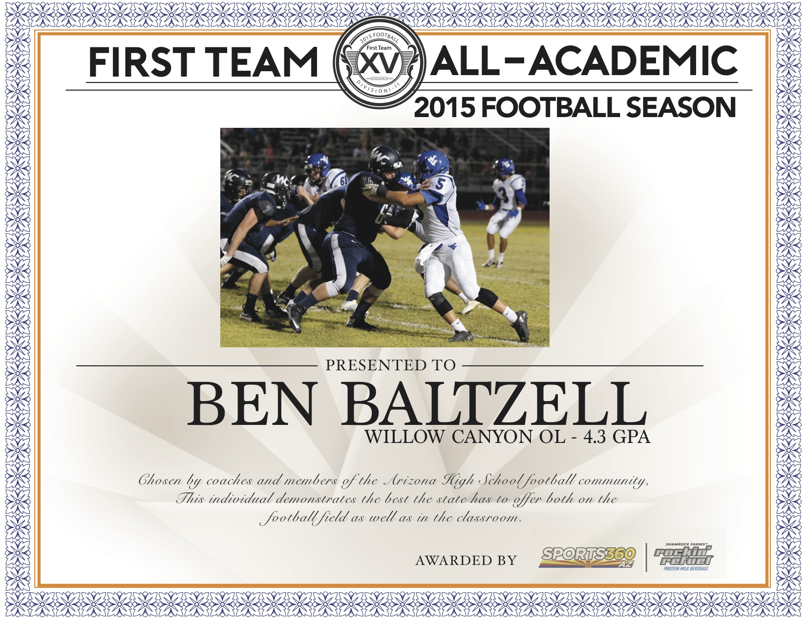 Based on the nominations from coaches and members of the Arizona High School football community, Sports360AZ introduces the 2015 Arizona All-Academic Football Team for Division I-II presented by Rockin’ Refuel, spotlighting the best the state has to offer both on the football field as well as in the classroom.